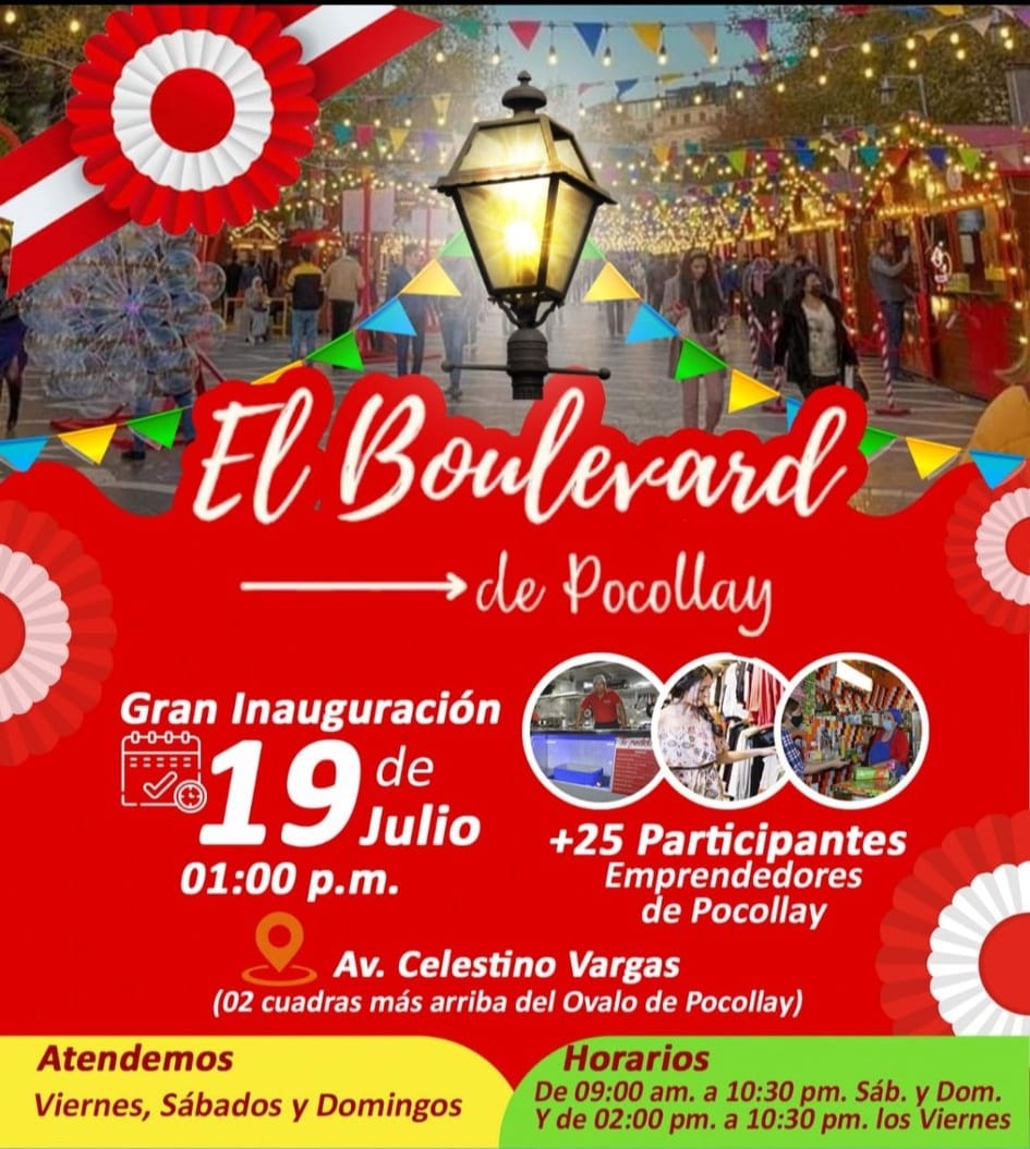 Como parte de su política de apoyo a los emprendedores de su distrito la Municipalidad Distrital de Pocollay inaugurará a la 1:00 PM su iniciativa El Boulevard de Pocollay a dos cuadras más arriba del Óvalo de la Av. Celestino Vargas a realizarse cada viernes, sábado y domingo.