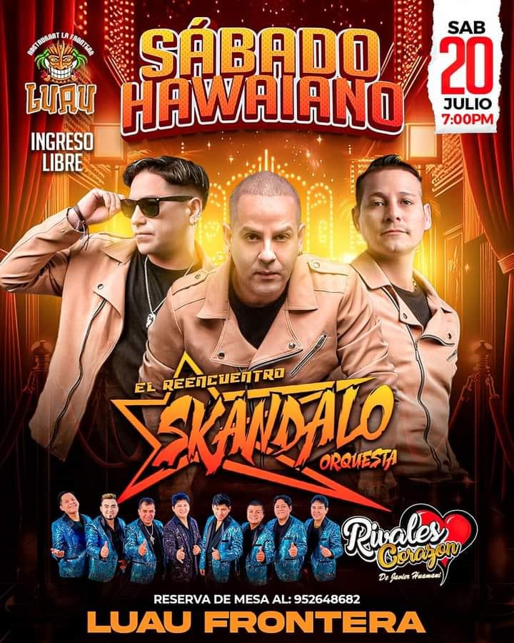 Luau La Frontera presenta en su Sábado Hawaiiano el Gran Reencuentro de Skandalo Orquesta. Empieza a las 7:00 PM en su local.
