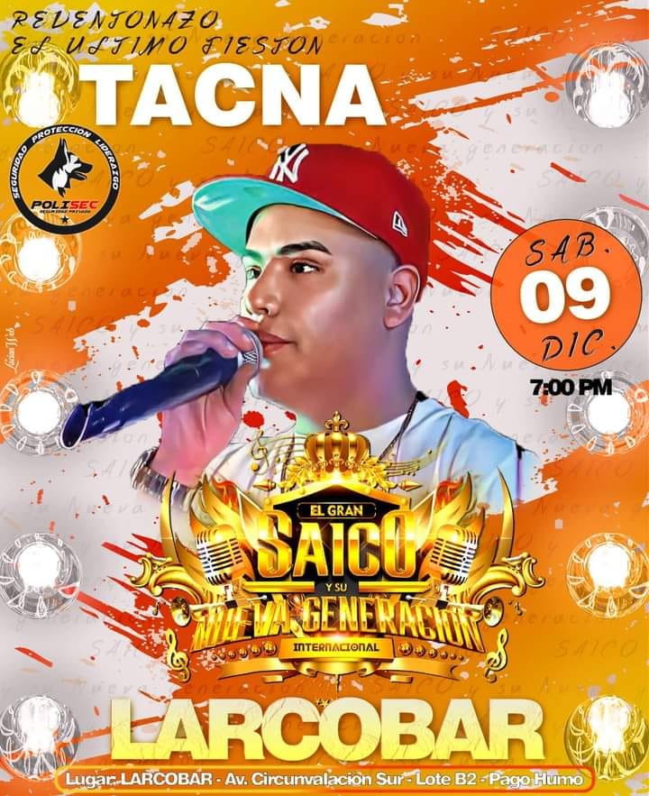 • A partir de las 7:00 PM en Larcobar (Av. Circunvalación Sur Lote B2 – Pago Humo) se presentará El Gran Saico y su Nueva Generación Internacional.