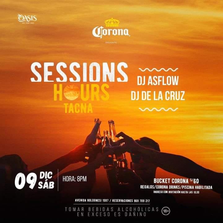 • En el local Corona (Av. Boognesi 1597) se prenderá el Session Hours Tacna con la participación de DJ Asflow y DJ De La Cruz. Comienza a las 8:00 PM.