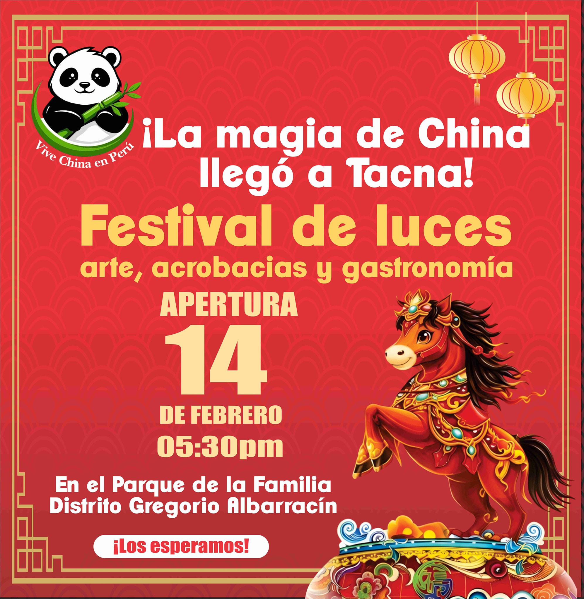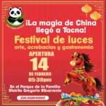 • Festival de Luces, Arte, Acrobacias y Gastronomía Vive China en el Parque de la Familia del distrito de Coronel Gregorio Albarracín Lanchipa. Durará hasta el 5 de abril en horario de 5:00 PM a 10:00 PM.