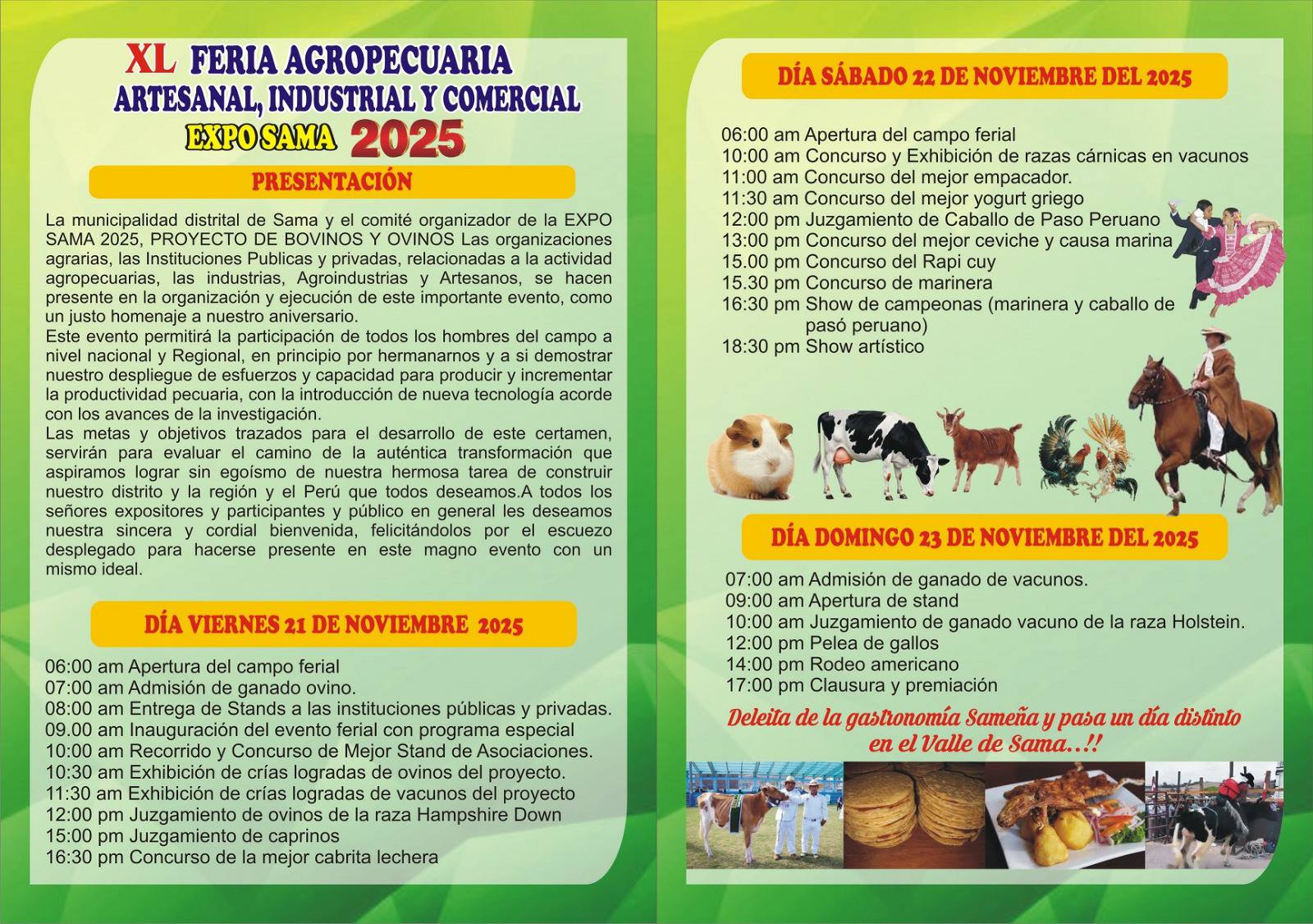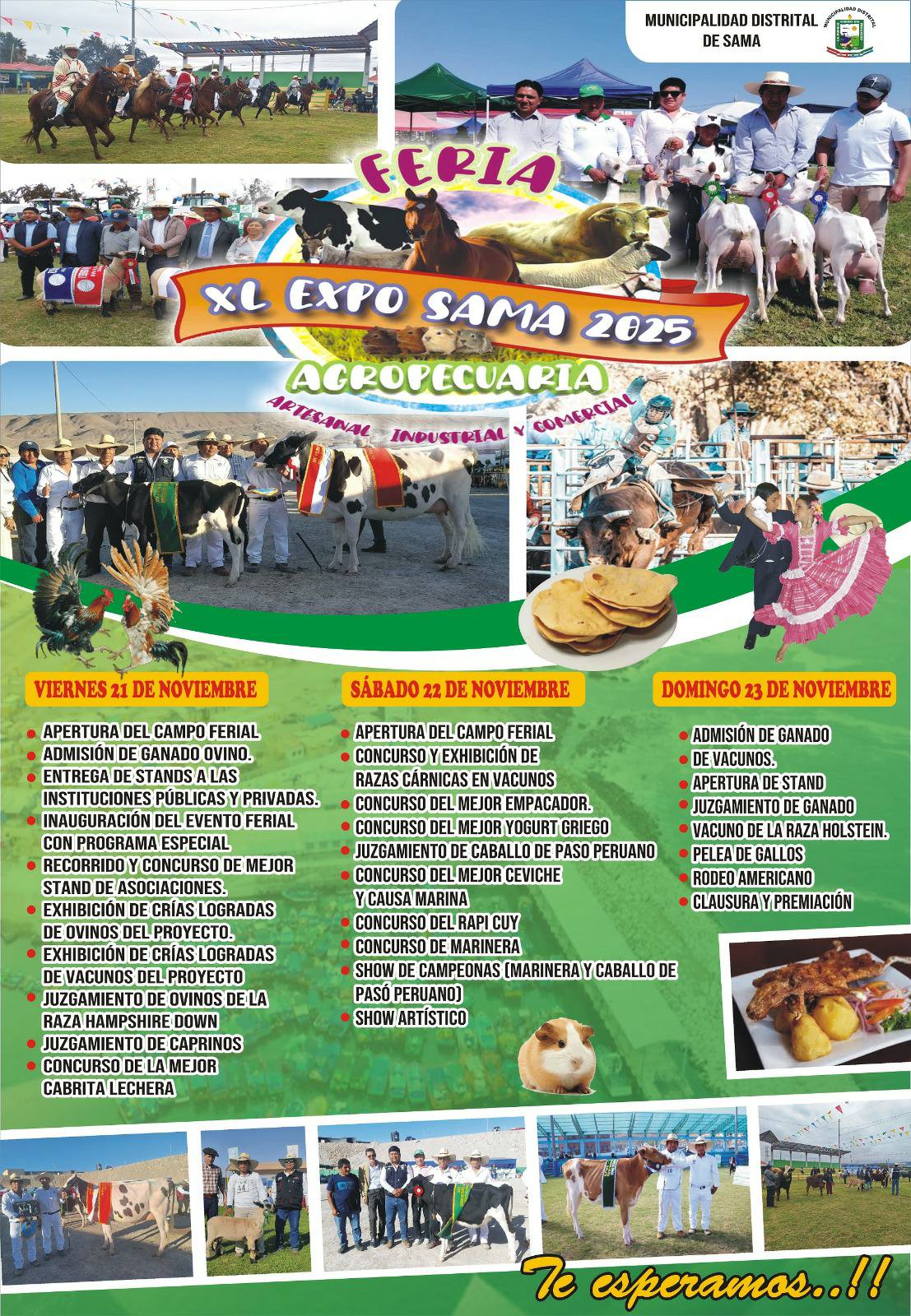 XL Feria Agropecuaria, Artesanal, Industrial y Comercial – Expo Sama 2025 del 21 al 23 de noviembre, a llevarse a cabo en el Campo Ferial Buena Vista de Sama.