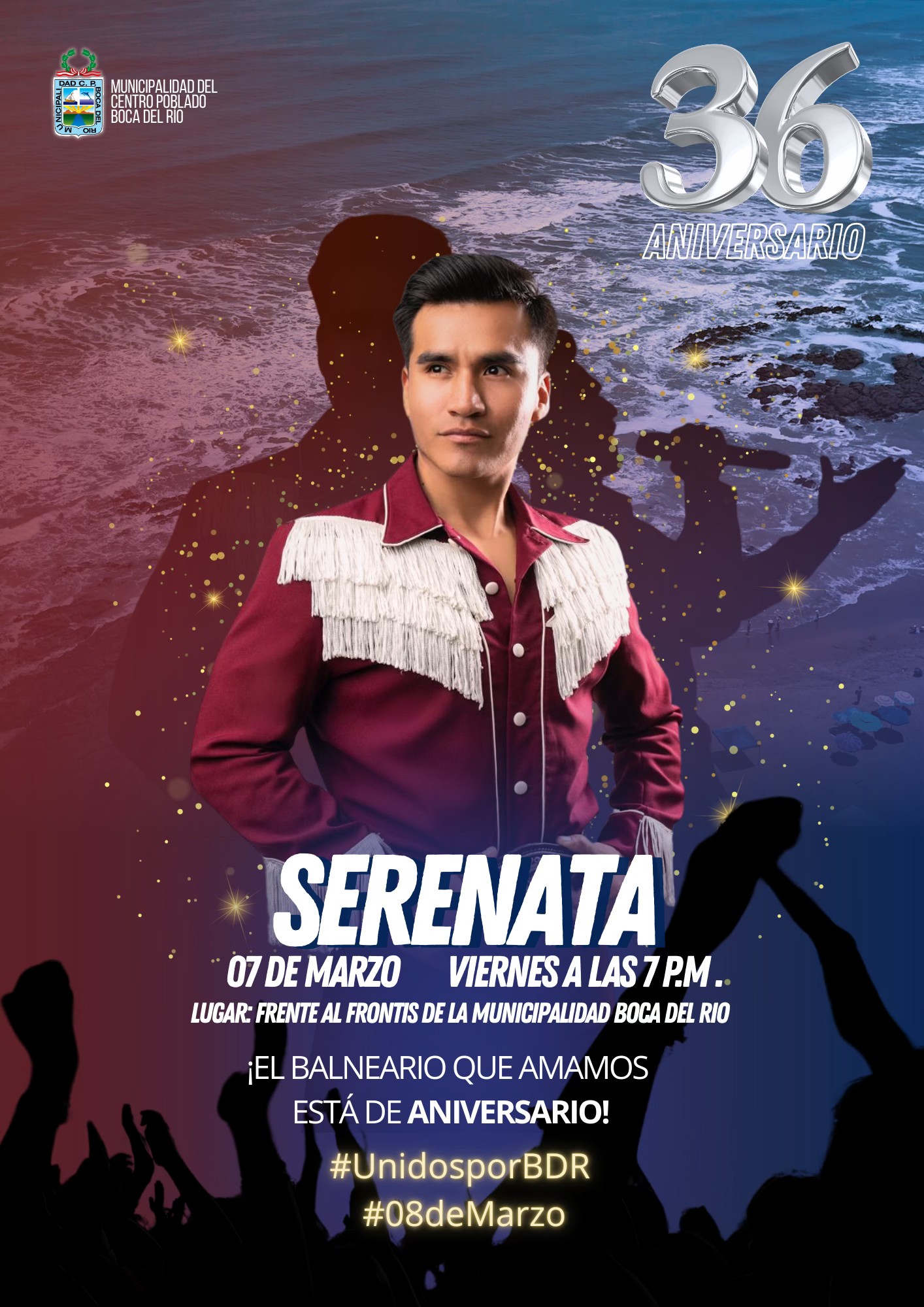 El Centro Poblado de la Boca del Río tendrá su serenata por su 36° aniversario en el frontis del local principal de su municipalidad. Será desde las 7:00 PM.