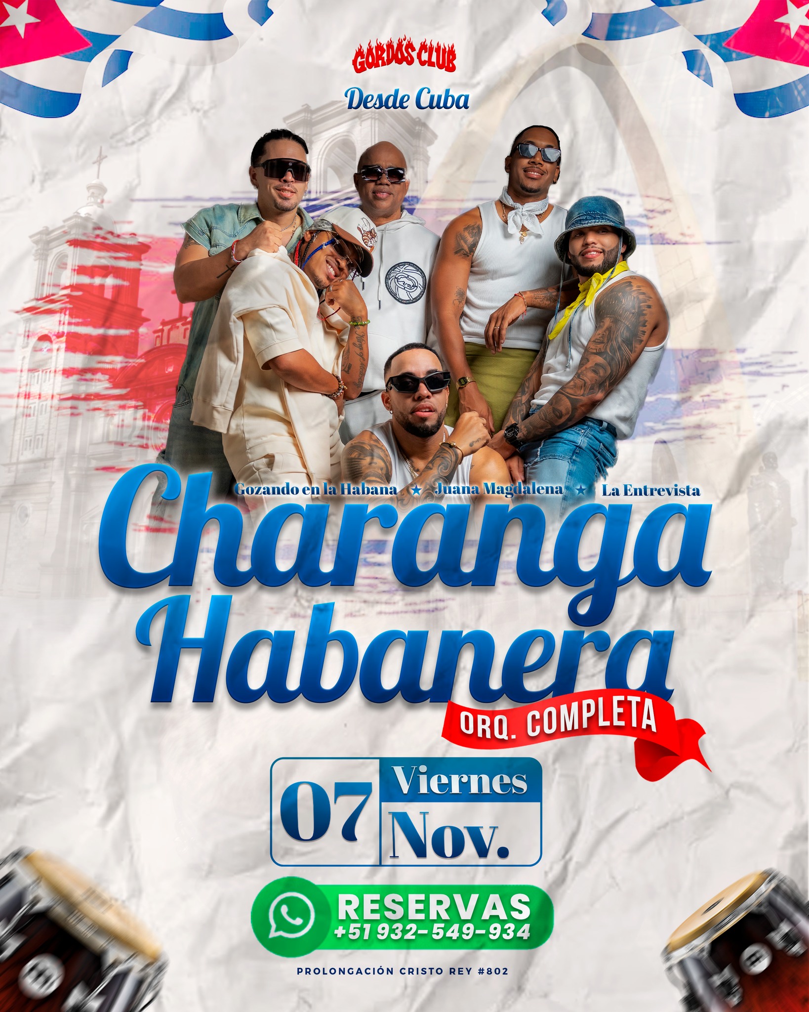 • En Gordos Club (prolongación Cristo Rey N° 802) se presentará desde Cuba La Charanga Habanera. Informes y reservaciones al 932549934.