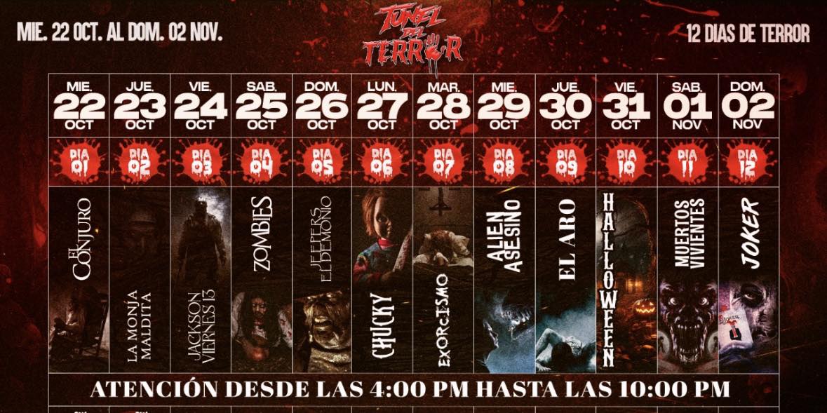 Continúa el Túnel del Terror, al costado del Restaurante La Frontera hasta el 2 de noviembre, con 30 actores en escena y variación de la escenografía cada día. Se atenderá de 4:00 PM a 10:00 PM. Entradas a la venta en el mismo local, Galerías Solari o en VAOPE.