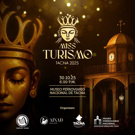 Gran Final del Miss Turismo Tacna 2025 en el local del Museo Ferroviario Nacional de Tacna. Organiza el Gobierno Regional de Tacna y la Cámara Regional de Turismo. Será a partir de las 6:00 PM.